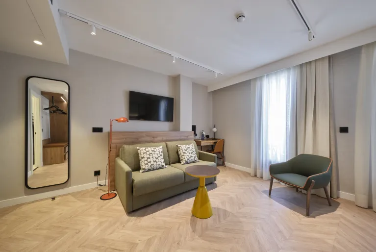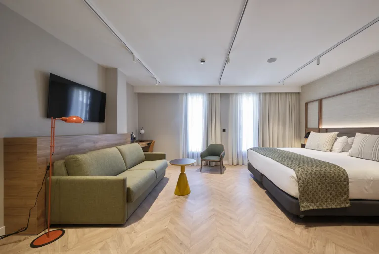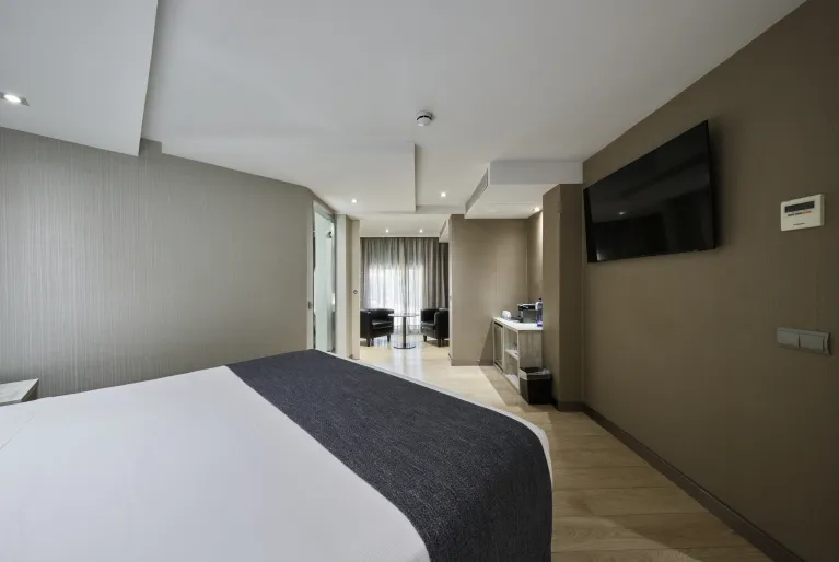 Se você não quer perder o novo episódio da sua série favorita durante a sua estadia em Barcelona, ​​ficará encantado em saber que todos os quartos do hotel Catalonia Sagrada Familia estão equipados com televisão com Chromecast. Além disso, os quartos premium e superiores são atualizados com um design clean e moderno em tons de bege e cinza. Mas, se quer mesmo ficar com o máximo conforto, reserve uma das nossas fabulosas junior suites e terá um quarto com sala de estar separada e cama king size.